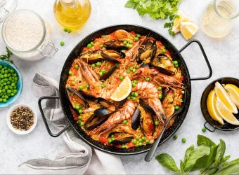 Bring a taste of Spain to your table with this vibrant, crowd-pleasing paella. Bursting with golden saffron rice, fresh seafood, tender chicken, and bold Mediterranean flavours, this iconic dish is as much about the experience as it is the taste.