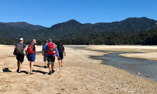 Another highlight of guided walking holidays is the people you meet, the chats along the way. There’s an instant connection when everyone loves walking. This was a particularly beautiful day in the Abel Tasman National Park, it’d been a mid morning start as we waited for low tide to cross the Awaroa Inlet.