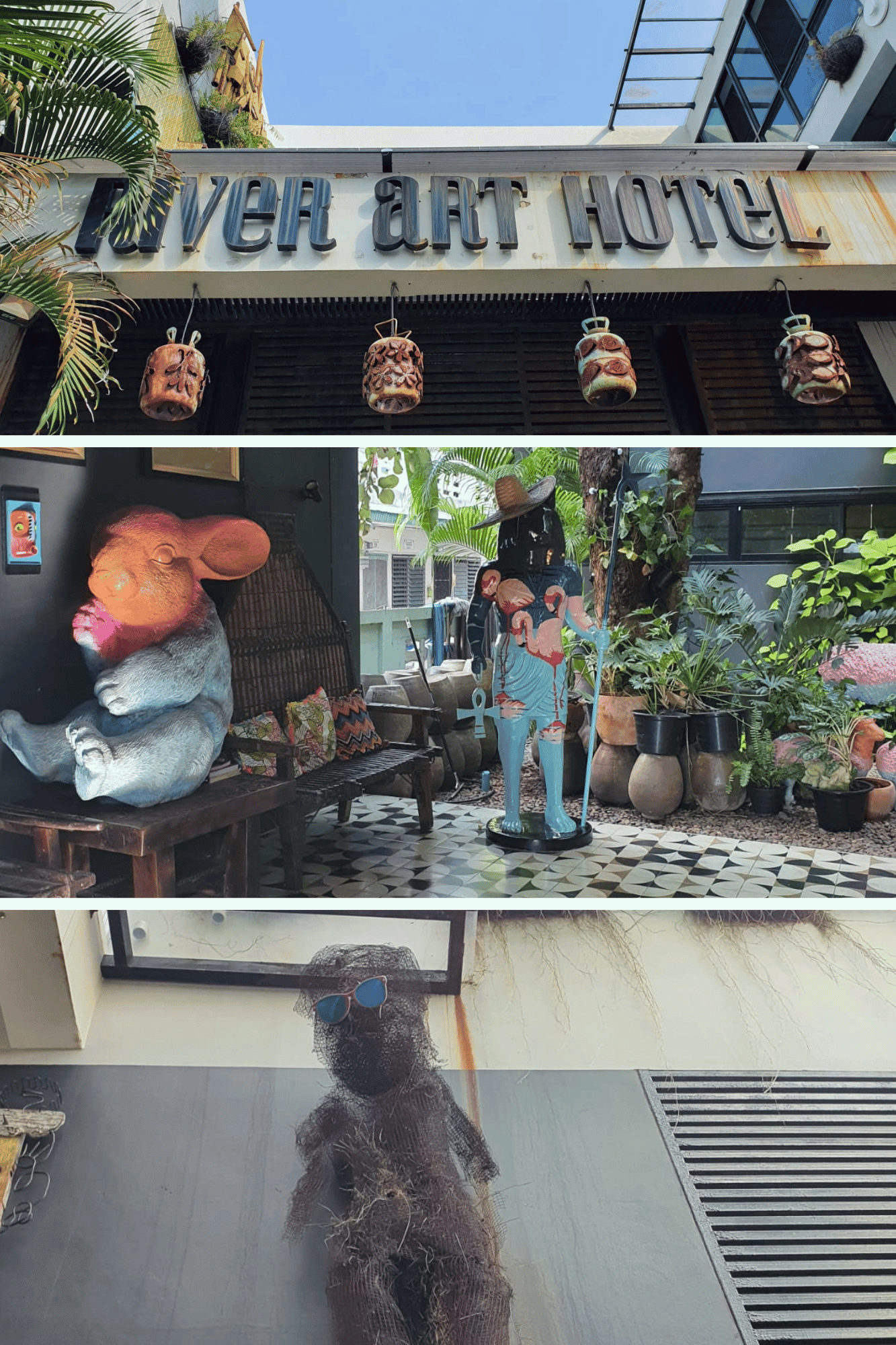 A First Impression: Artistic and Inviting: As soon as I stepped through the grand, rustic wooden doors of the River Art Hotel, I knew this place was unlike any other. The vibrant signage welcomes you to an oasis hidden within the lush foliage of Chiang Mai’s urban landscape. The exterior sets the tone for the artistic journey inside, immediately pulling you into its world of eccentricity and charm.