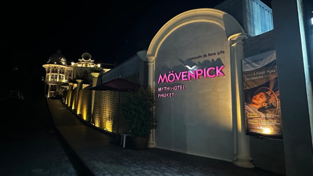 A Grand Welcome and Location: Upon arriving at the Mövenpick Myth Hotel, the illuminated signage welcomed me, hinting at the grandeur within. The hotel’s prime location offers easy access to Patong’s vibrant nightlife, beach activities, and cultural landmarks, making it perfect for leisure travellers.