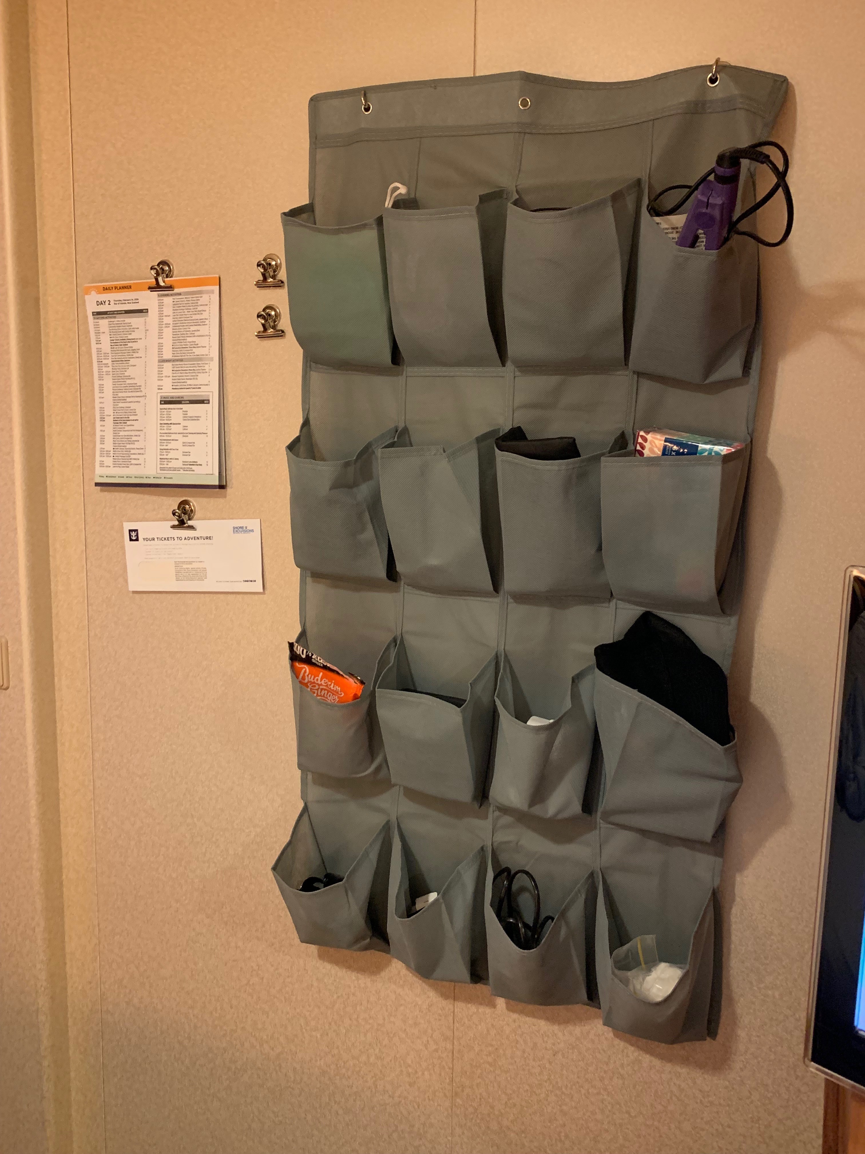 - organiser is a lightweight item to pack, and great for wall storage using magnetic hooks. This will get items off the small desk space in the cabin, and still handy to use.