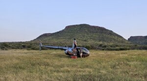 Watching on as the vet went up in a helicopter to find a rhino that hadn’t yet had ear notching, I was filled with excitement in anticipation of what was to come. Eventually they were able to gently herd a 4 year old calf and his mother towards us. The calf was sedated with a perfect shot from the vet in the helicopter (the helicopter pilot was an African Crocodile Dundee with bare feet and a cowboy hat), in swooped the rest of the team to safely bring down the rhino while the counter poaching team kept the mother away so the experts could work their magic on her baby.
