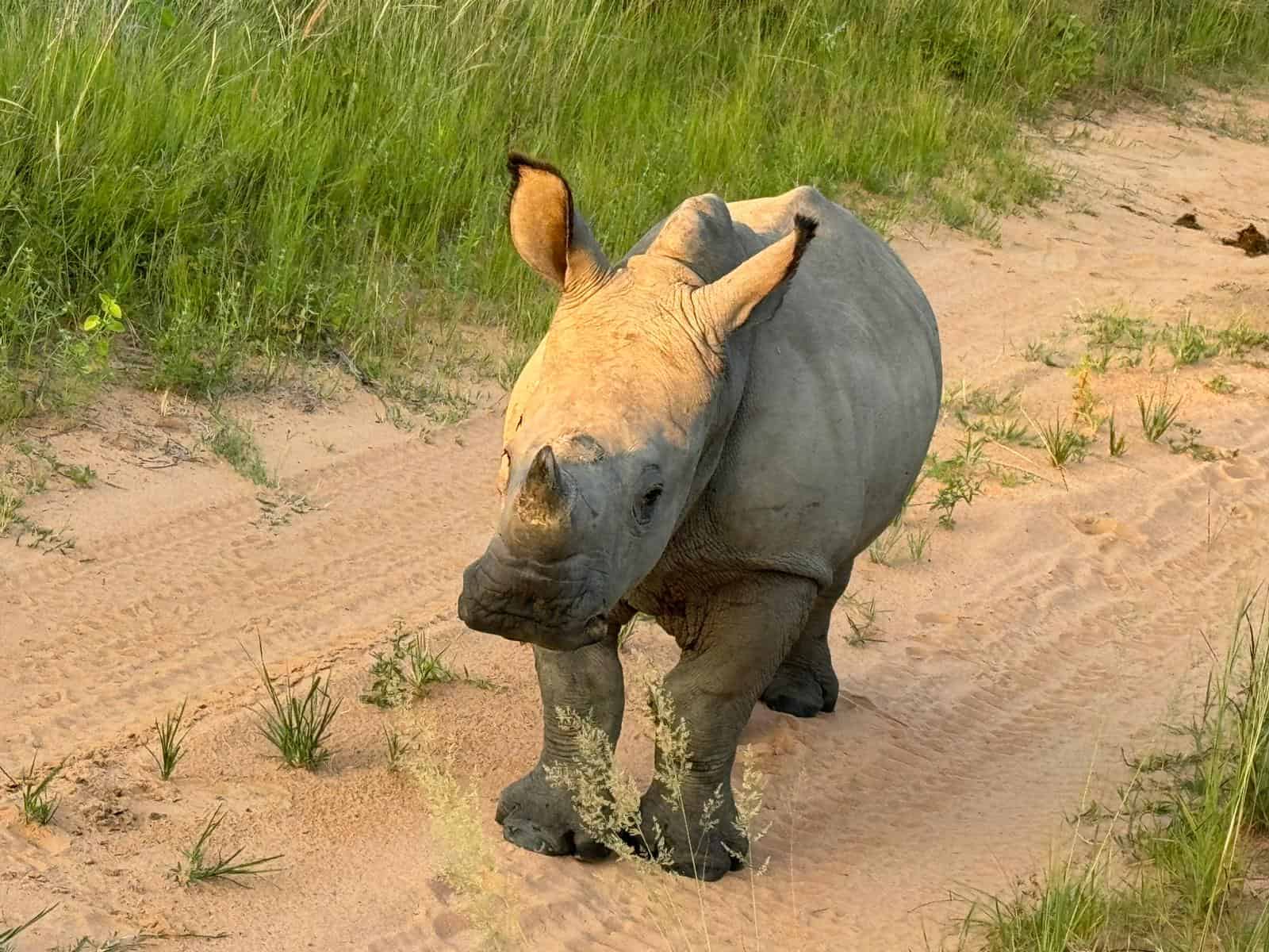 A little background information: Marataba and Madikwe do not dehorn their rhinos. Dehorning is a practice in many game reserves and national parks as a measure to deter poachers. Rhino horns are made of keratin which means they grow back so dehorning is required every 18 months or so. Instead, these parks micro-chip the rhino and its horns and have their own counter poaching units. They also notch the ears of the rhino in unique patterns for identification purposes.