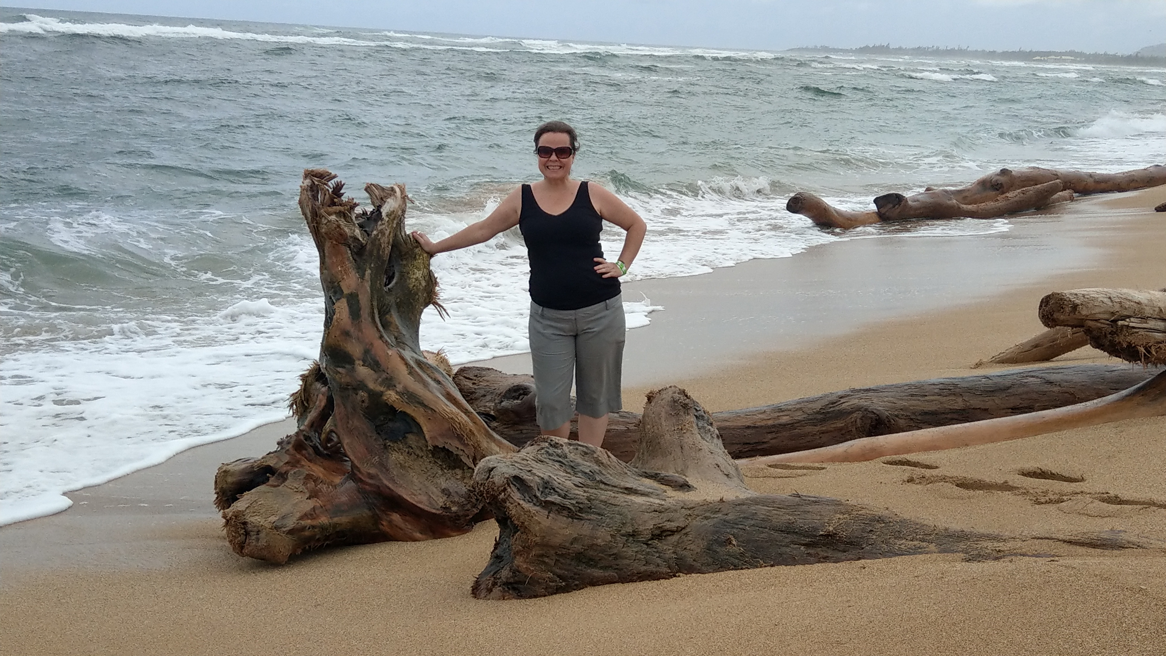We strolled along Lydgate Beach, taking photos of the “wild chickens” roaming everywhere & being amazed by the massive tree trunks of driftwood all along the beach. We decided not to follow the crowds to Fern Grotto or the Botanic Gardens, and also made the decision to skip the “shopping opportunities” along the way. Our next stop was the Kilohana Plantation.