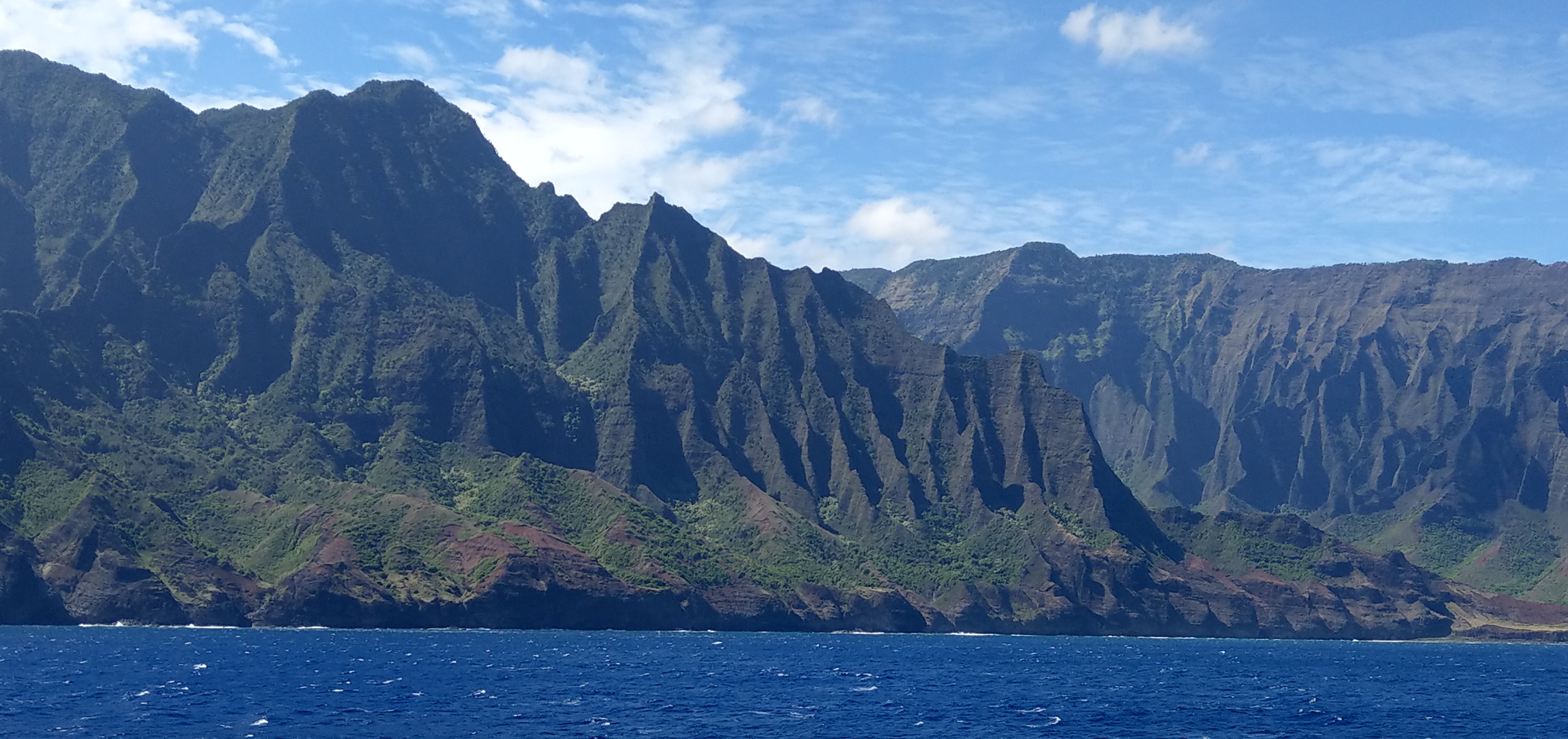 Knowing that we were avoiding the rain & wind of a hurricane, I took a deep breath & decided that missing one out of our four adventures was ok. We sailed up to Kauai & marvelled at the spectacular Na’Pali Coast from the deck of the Pride of America a little earlier than expected, watching the helicopters hovering among the towering cliffs & knowing we’d be there the next day.