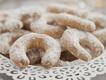 - Mix powdered sugar and vanilla sugar. Sprinkle the warm crescents with the sugar or toss in the sugar once they have cooled slightly. Store in an airtight container. Eat within a week – trust me they will not last that long.