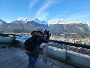 A must-do is a visit to the Bergisel Olympic ski jump which stands proudly above the Olympic city, fittingly on the land where freedom was won. We were lucky enough to have a private VIP tour with a former ski jumping champion, Julian, who explained the sport complete with a bird’s eye view from top of the jump and seating plank. Did you know the skiers have a view out to the cemetery from to the top of the jump, now there’s an incentive to make the jump stick.