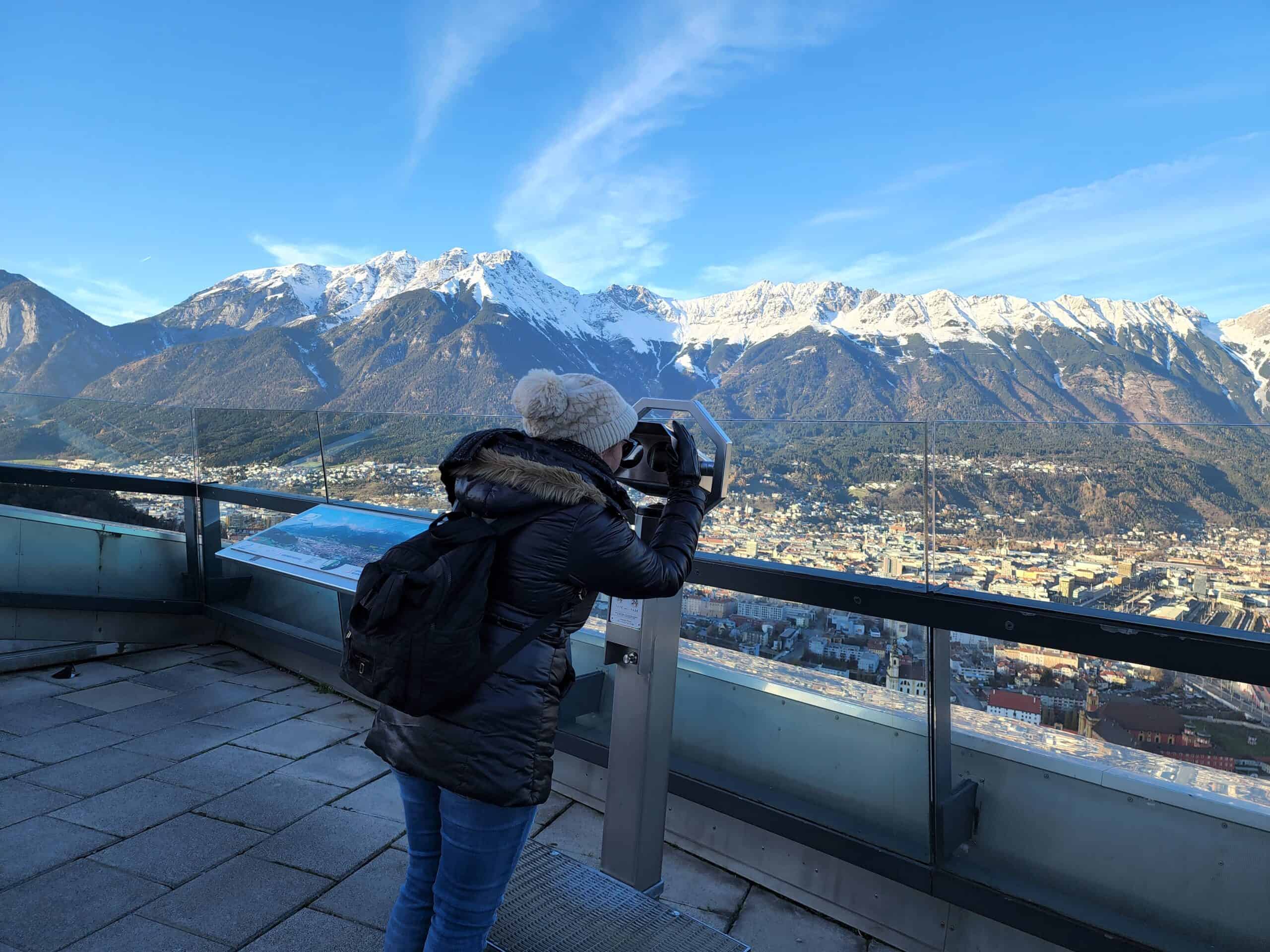 The Adlers hotel, where we stayed, is conveniently located near the train station and offers stunning views over the roofscape of Innsbruck with an amazing bar and dining room on level 12 with a panorama of the surrounding snowcapped alps.
