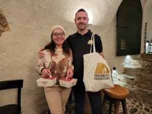 Here you’re in the heartland of Tirolean heritage and the best way to experience this is on a food tour with Kurt who not only explains the history and heritage but comes equipped with his own flask and shot glasses to enjoy nips of Krautinger.