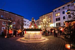 A 2-hour train ride will transport you from Salzburg to inspirational Innsbruck. With urban flair and alpine nature, it offers a unique mix seldom seen elsewhere. Innsbruck really is Christmas in the mountains, stroll the streets by day or night and be enchanted by the special atmosphere.