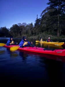 In the evening, we joined Waimarino Kayak Tours for a Glowwarm Kayak tour. It was a short scenic drive through rolling countryside before we arrived at the stunning Lake McLaren. Here we were welcomed with “Te Reka O Te Whenua- the Taste of the Land” a beautifully curated tasting table setting that showcased flavours unique to Aotearoa. We enjoyed New Zealand cheeses, sweet Rewarewa honey, and other artisan treats, paired with locally brewed kombucha and a cup of gently spiced, alcohol-free mulled wine…delicious.