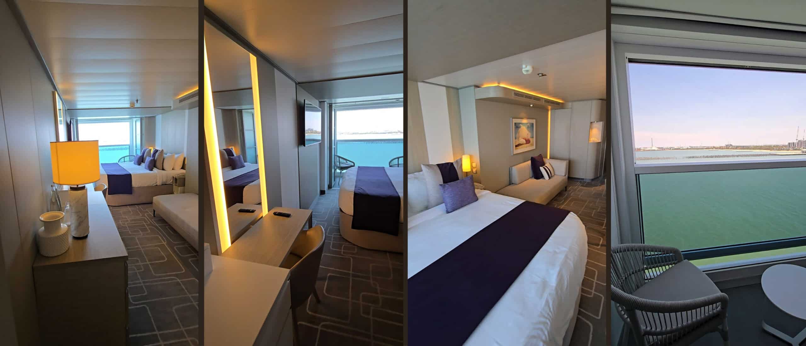 Celebrity Edge introduced the innovative Infinite Veranda, where floor to ceiling glass opens at the touch of a button, seamlessly blending indoor living with ocean views. It’s ideal for travellers who love light filled spaces and a modern design aesthetic. We personally love this feature!