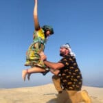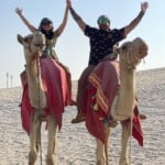 With our bellies full and spirits high, we embarked on the thrilling portion of our adventure: a desert safari! We bounced across the sand dunes in a 4×4, adrenaline pumping and laughter erupting. The desert landscape, bathed in the golden afternoon sun, was a sight to behold. We even got the chance to experience the traditional mode of desert travel – a camel ride! And let me tell you, the view of the Saudi Arabian border from the top of those majestic creatures was something truly special.