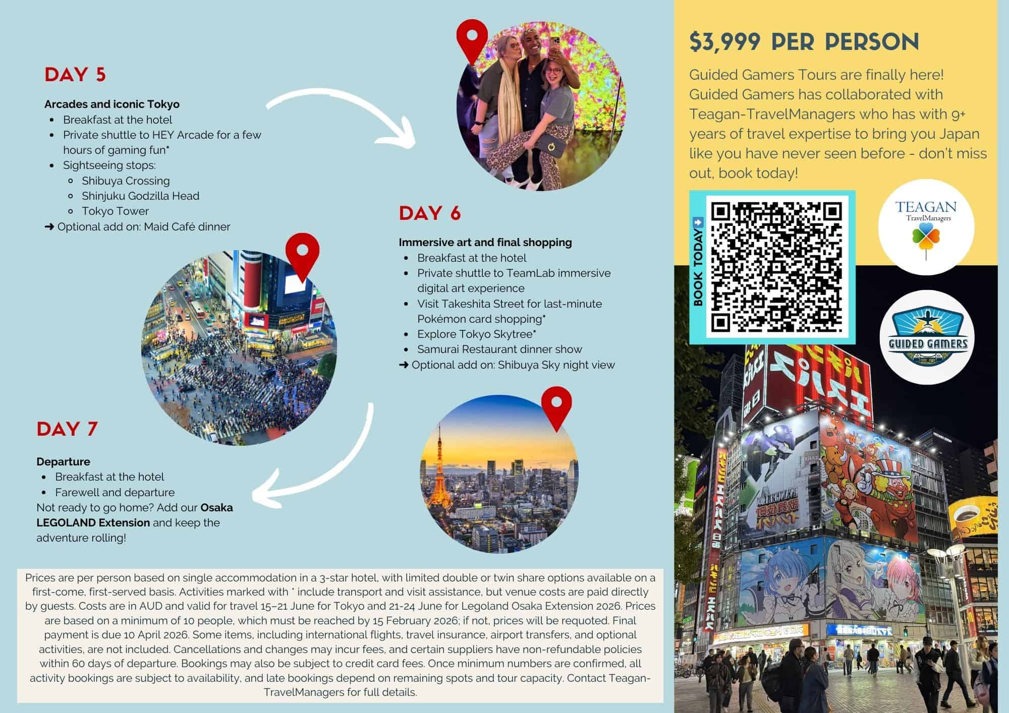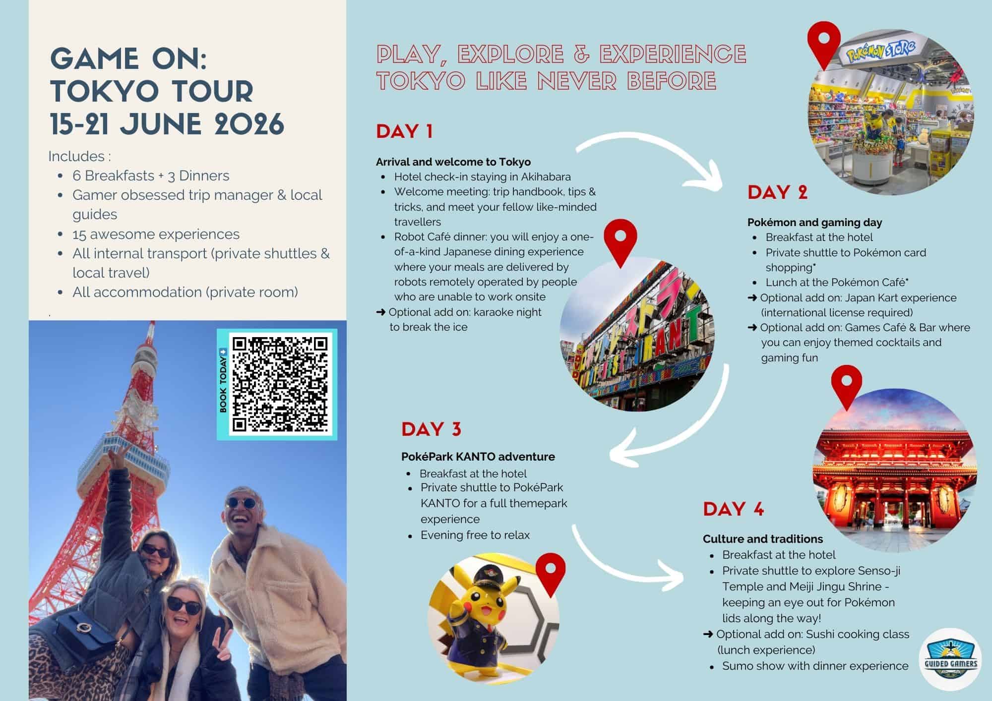 Embark on the ultimate gaming adventure with Guided Gamers, proudly created by the team in collaboration with Teagan-TravelManagers. Explore the vibrant streets of Tokyo, dive into Pokémon shopping, experience iconic gaming cafés and immerse yourself in theme parks like PokePark KANTO and TeamLab’s digital art worlds. Extend your journey to LEGOLAND Japan and Universal Studios Osaka for even more fun and unforgettable memories. Whether you’re a gaming enthusiast, pop culture fan or looking for a unique Japan experience, our tours combine expert guidance, exclusive access, and hassle-free travel for an unforgettable adventure.