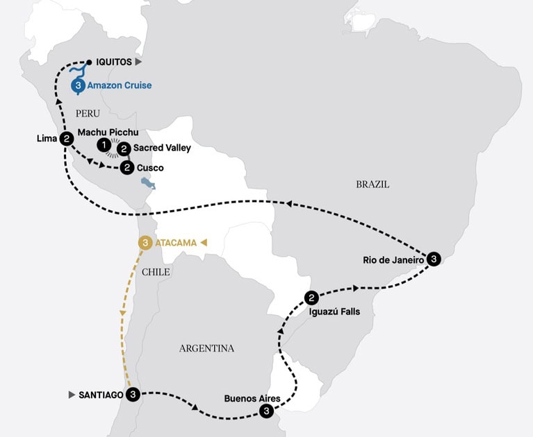 This morning, disembark the Delfin III and, en route to Iquitos, visit the Rescue and Rehabilitation Center for River Mammals (Amazon Forever). Here see where biologists and volunteers have cared for some of the endangered Amazon wildlife from juvenile manatees to the enigmatic sloths, macaws and toucans. Learn about the work the team is doing here to help preserve these valuable species. Your South American adventure concludes at Iquitos Airport.