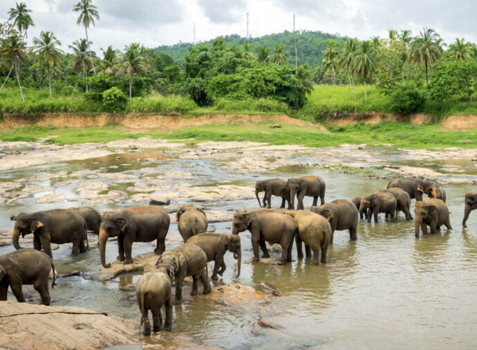 Pinnawala Elephant Orphanage is a home for about 60 elephants (out of which around 50 are baby elephants) found abandoned or orphaned in the wild. They are being cared for, fed and trained by the wildlife authority.
