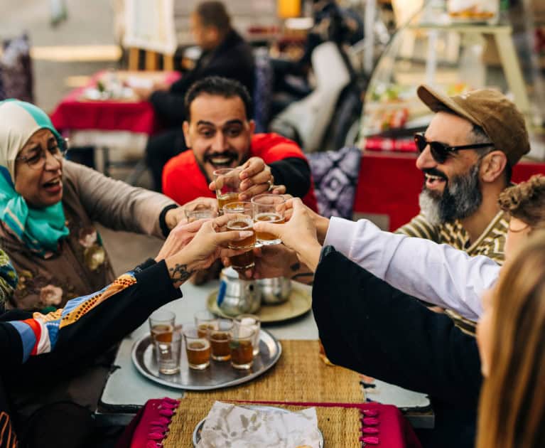 Today, you’ll head to vibrant Marrakech. When you arrive, meet your local guide who will lead you through the medina, sharing the city’s history and hidden tales during the walk. From the Koutoubia Mosque to Marrakech’s Photography Museum, there’s so much to absorb in this brilliant city. Take your time, exploring the museum’s exhibition of images taken by travellers to Morocco between 1870 and 1950. Head to the great square of Djemaa el-Fna, one of the largest public spaces in the world. When night falls, it transforms into a hive of activity. Henna painters, performers and storytellers share the square with a street food bazaar of stalls loaded with Moroccan delicacies that you’ll have the chance to indulge in for dinner tonight. Enjoy a selection of the best local tastes from the various food stalls – including harira (chickpea soup), barbecued and slow-cooked meats with Moroccan spices, fresh salads, fried fish, eggplants and peppers. Wash it all down with some traditional mint tea and share stories, photos and a warm moment with your group before your farewell tomorrow.