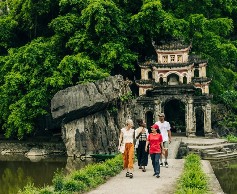 Wake up without an alarm today as you’ve got a free morning to explore. Maybe head to the Hang Mua Cave for sunrise, where you can take photos at the gorgeous lotus field and hike to the viewpoint, which offers a 360-degree view of Ninh Binh. Then, get ready for a fun, action-packed afternoon in the Thung Nham ecotourism zone, just outside of Ninh Binh. First, you’ll take a traditional rowboat to discover the largest natural bird garden in northern Vietnam. Float peacefully along the calm waters as you’re surrounded by towering mountains, lush greenery and, of course, a mass of beautiful birds. Then, you’ll explore the cave system that features But Cave and Tien Ca Cave. From here, your journey will take you to spiritual sights that include the thousand-year-old banyan tree, Gii Dai Temple and Linh Than Mieu. Unwind as you explore the Thung Nham flower paradise, nursery and vegetable garden.
