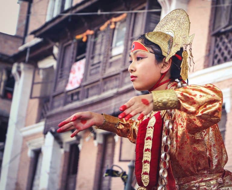 One of the most unique experiences of the day is receiving a blessing from the Living Goddess, Kumari – a deeply revered young girl chosen from the Newar community to serve as the human incarnation of divine energy. This rare encounter offers a glimpse into one of Nepal’s most fascinating cultural traditions.