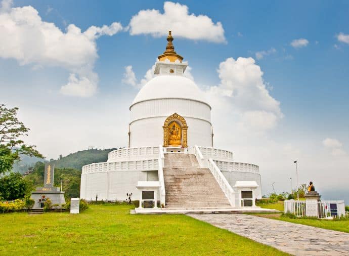 In the afternoon, visit the striking World Peace Pagoda, a gleaming white Buddhist stupa perched high on a ridge above Phewa Lake. Built to inspire peace and unity among all nations, the pagoda offers sweeping views of the lake and surrounding mountains – a perfect place for quiet reflection and photography.