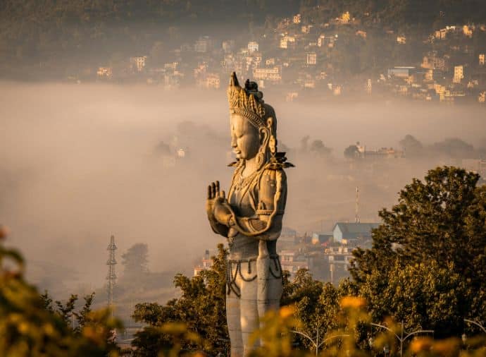 Situated approximately 6 km from the city centre, Boudhanath is the spiritual heart of Tibetan culture in Nepal. Towering at 36 metres, the stupa is one of the largest in South Asia and holds deep significance for both Buddhists and Hindus. Renovated in the 8th century by the Licchavi rulers, its mandala design mirrors that of Gyangtse in Tibet. Said to entomb the remains of the revered Kasyap sage, it is a place of profound peace. Watch as devotees perform Kora – a circular walk around the stupa while spinning prayer wheels and chanting “Om Mani Padme Hum.” You may also light a butter lamp as part of your visit to this sacred site.